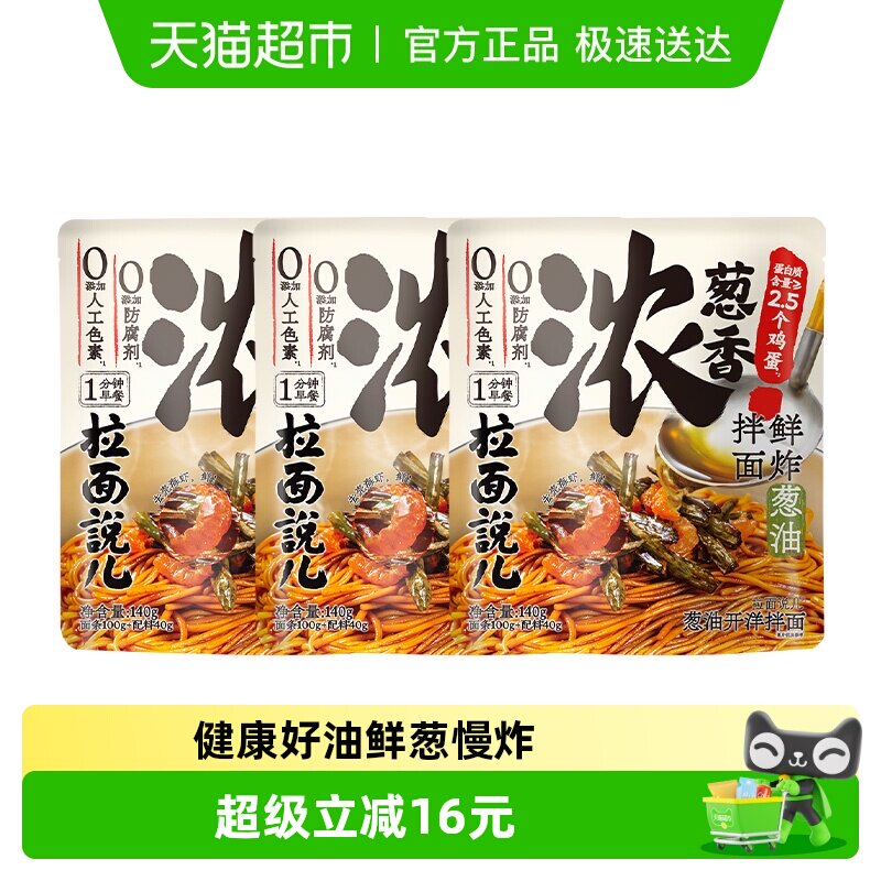-> 【新】拉面说儿葱油开洋拌面140g*3袋早餐面方便速食宵夜孩子早餐