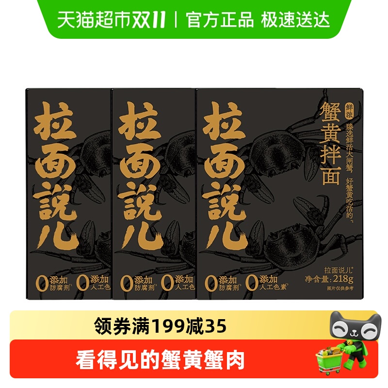 -> 拉面说儿鲜浓蟹黄面218g*3盒苏式细面非油炸干拌面速食