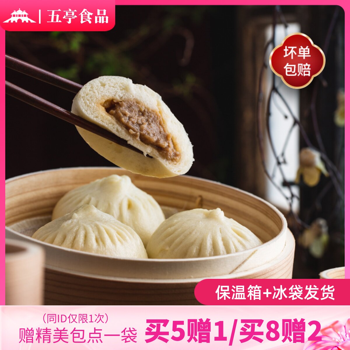 -> 【鲜肉包】五亭扬州包子早餐特产鲜肉包大肉包速冻包子速食半成品