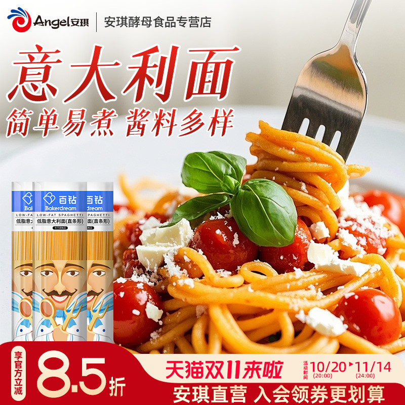 -> 百钻低脂意大利面家用速食早餐通心粉面条商用番茄酱黑胡椒酱意面