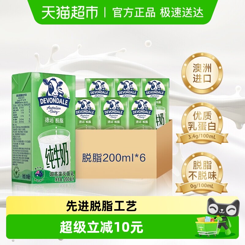 -> 【进口】澳洲德运牛奶早餐 脱脂牛奶200ml*6盒纯牛奶