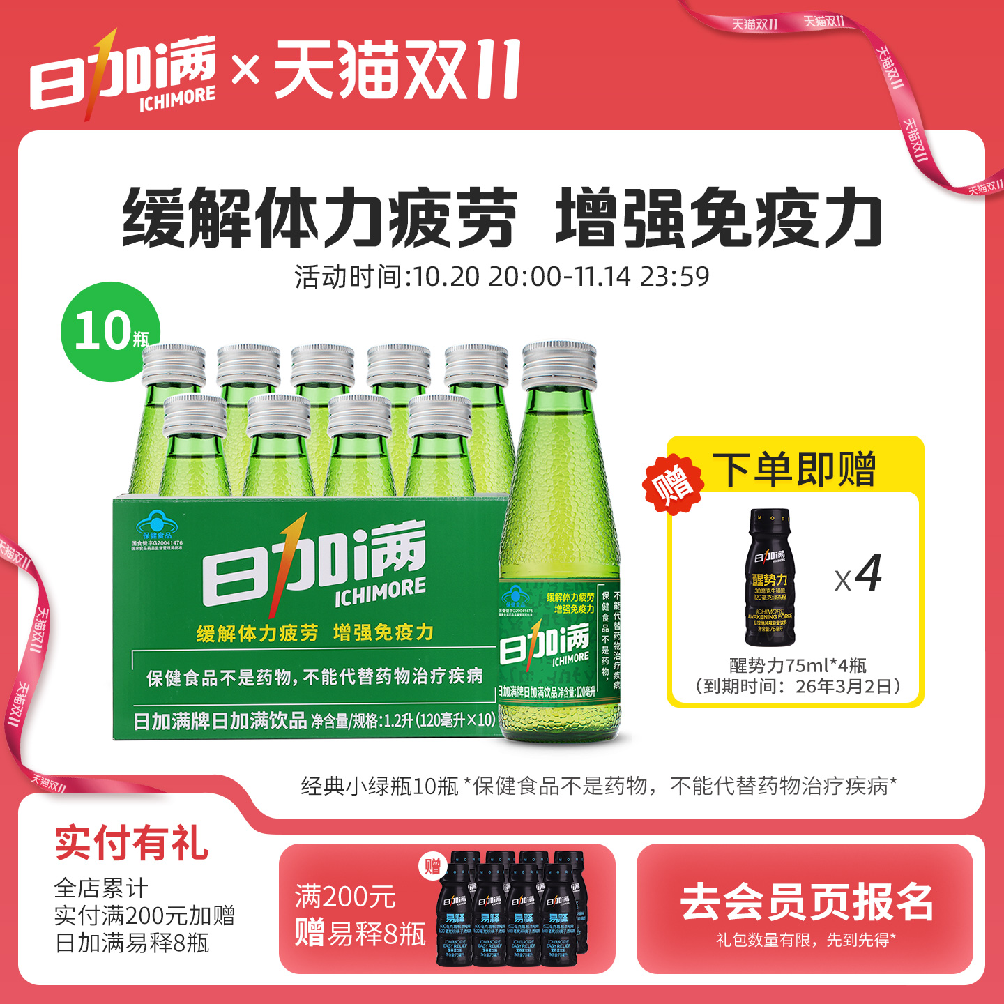 日加满功能饮料小绿瓶氨基酸牛磺酸运动熬夜提神加班120ml*10瓶