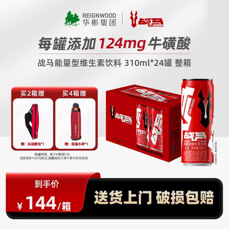 -> 战马能量型运动维生素饮料310ml*24罐熬夜提神牛磺酸饮品