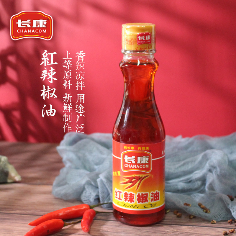 -> 长康辣椒油玻璃瓶200ml凉拌香辣红油泼辣子香而不辣小瓶增香调味