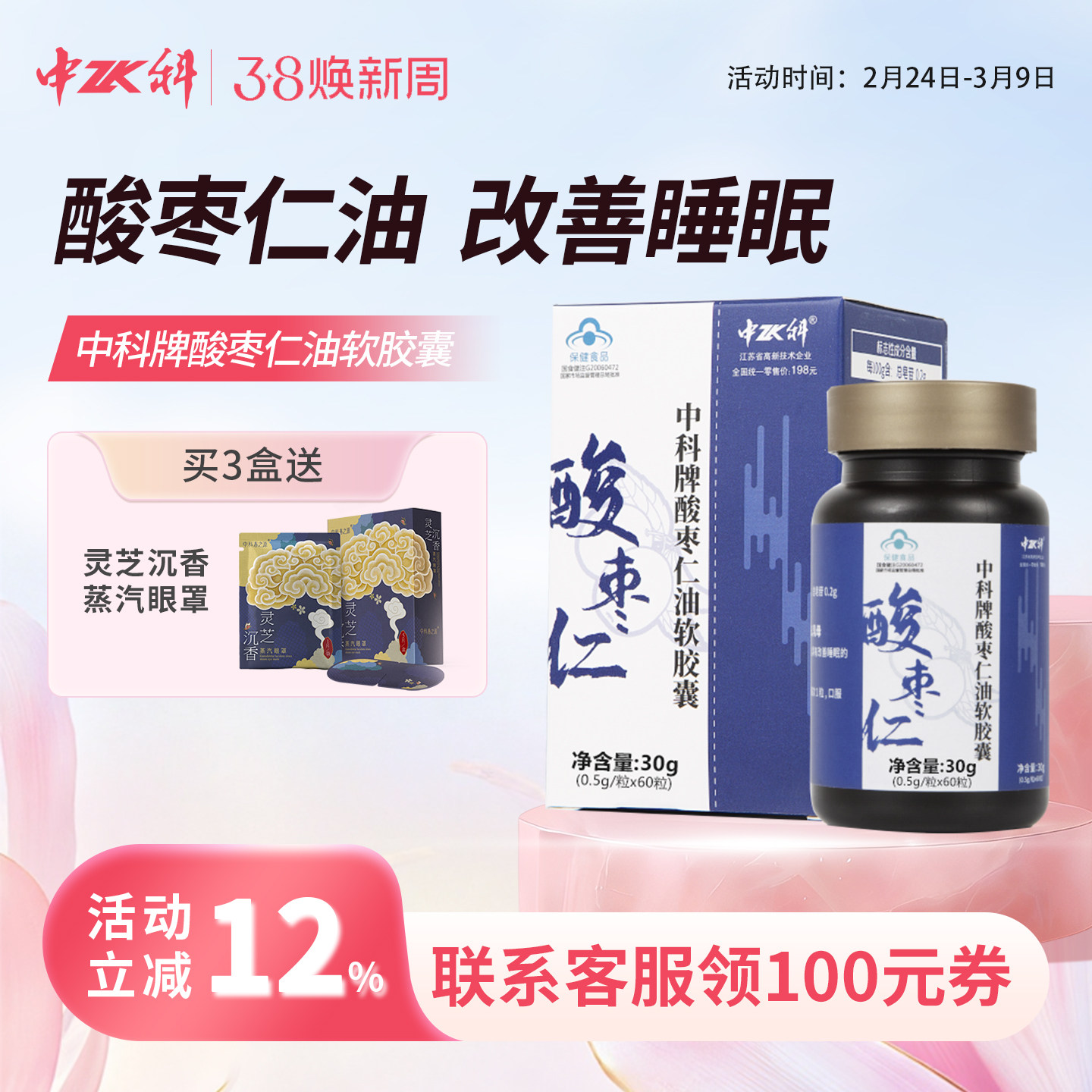 -> 中科酸枣仁油软胶囊官方正品旗舰店安神助眠安眠改善睡眠保健品