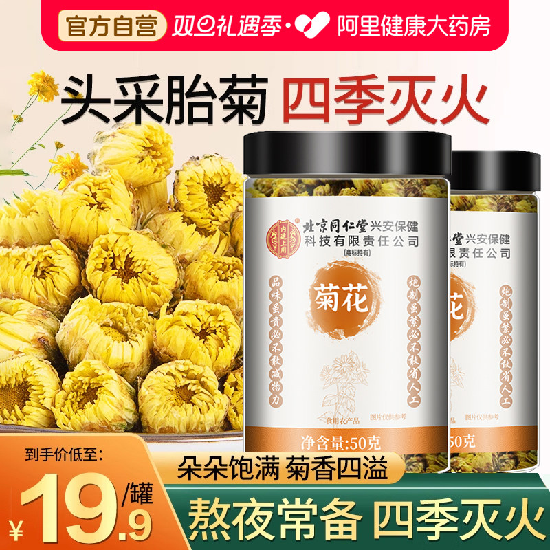 -> 北京同仁堂菊花茶胎菊白特正品级贡菊花杭凉茶叶干清火官方旗舰店