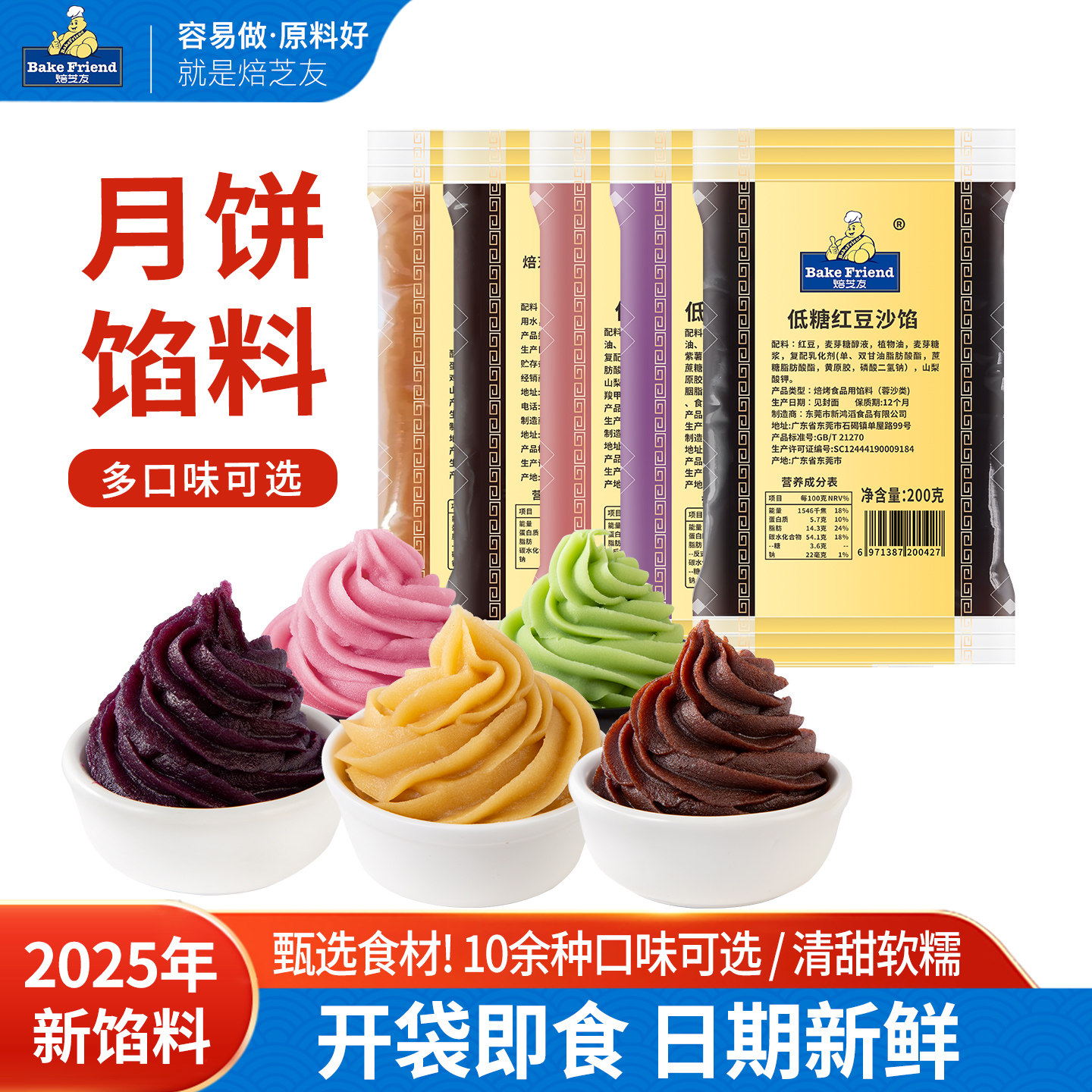 焙芝友冰皮月饼馅料200g红豆沙蛋黄白莲蓉奶黄五仁家用鲜粽子肉粽