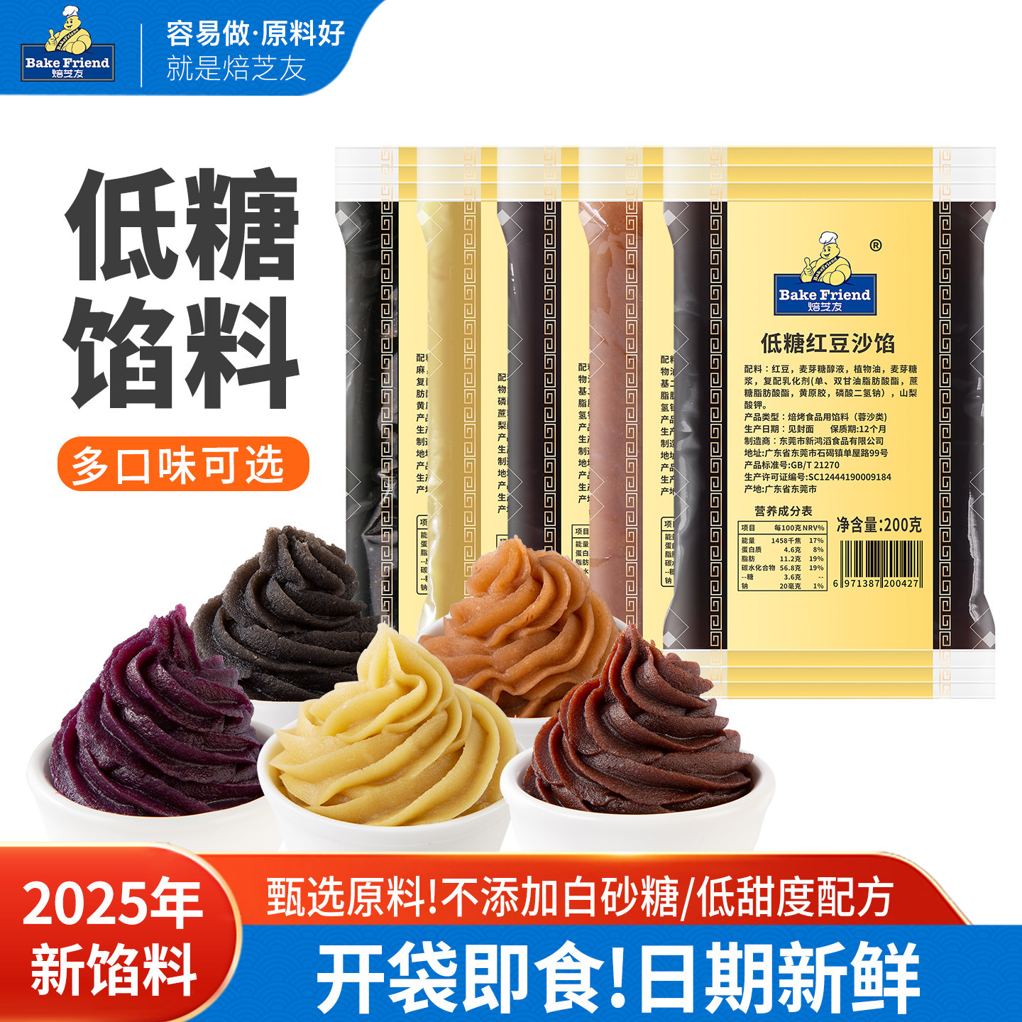 -> 焙芝友无蔗糖月饼馅料200g低糖红豆沙白莲蓉紫薯香芋泥馅粽子材料