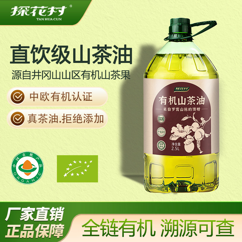 -> 探花村纯正有机山茶油2.5L装低温压榨正宗茶籽油食用油官方店正品