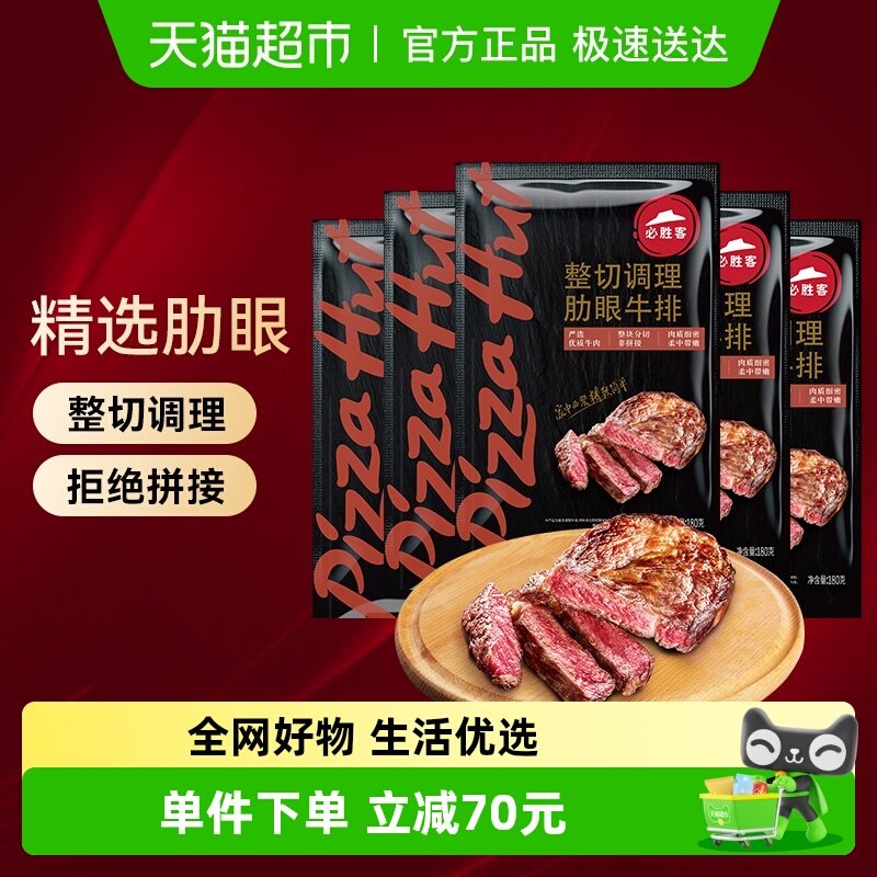 -> 必胜客优选原肉整切调理肋眼牛排180g*5件共900g牛肉牛扒西餐早餐