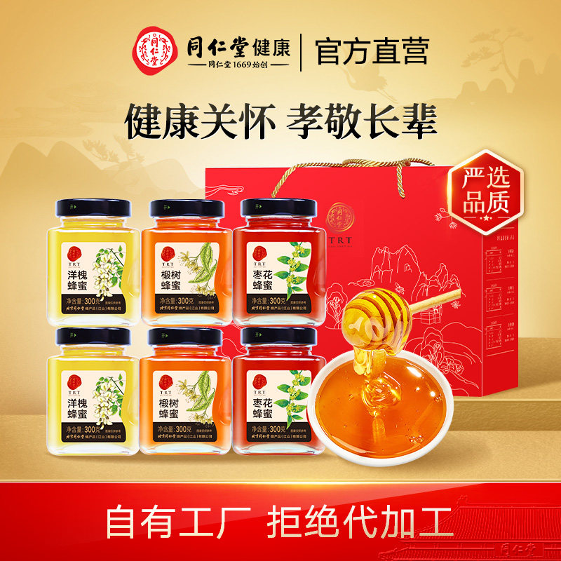 蜂蜜礼盒】北京同仁堂蜂蜜纯正天然枣花椴树洋槐送礼长辈父母正品