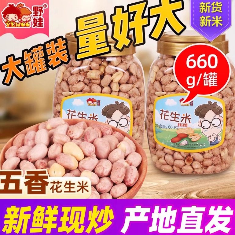 -> 野娃大罐装新米五香味花生米奶香盐奶香味下酒菜罐装休闲零食