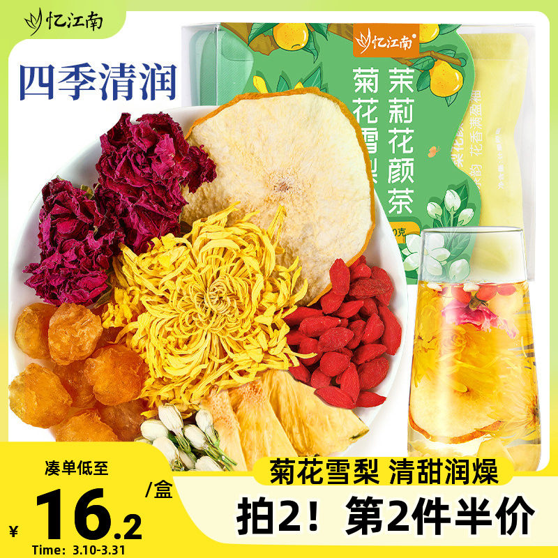 -> 忆江南菊花雪梨茉莉花颜茶60g煮泡枸杞玫瑰花桂圆菠萝花果养生茶