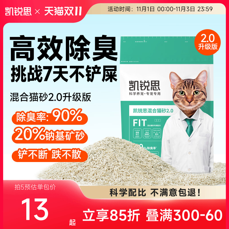 -> 凯锐思混合猫砂除臭低尘结团豆腐膨润土矿砂幼猫猫沙20公斤包邮