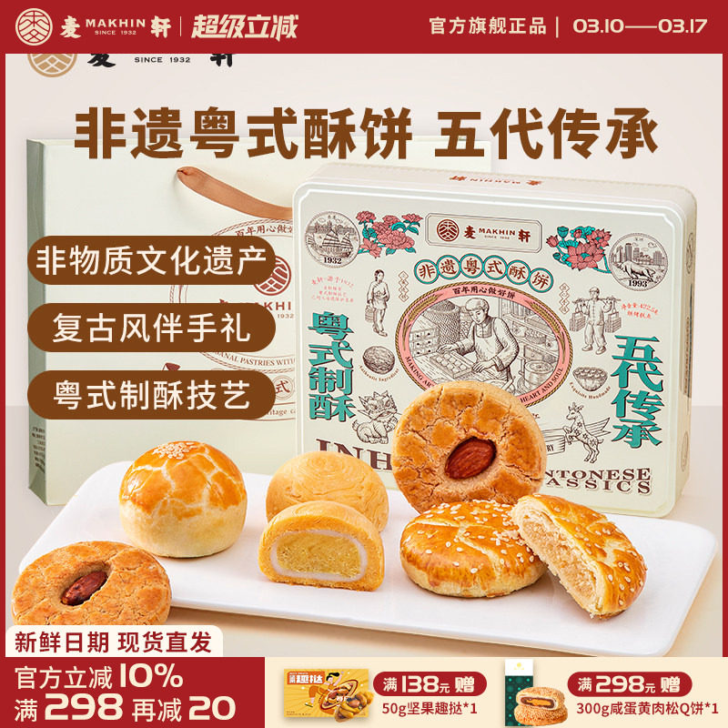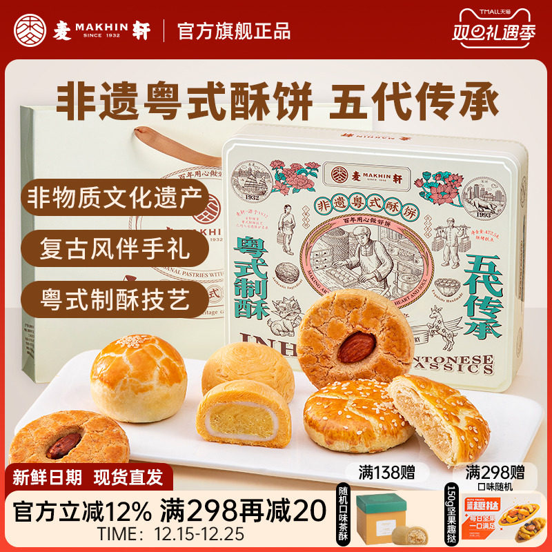 -> 麦轩限量非遗粤式酥饼礼盒蛋黄酥老婆饼杨枝甘露潮式酥核桃酥手信