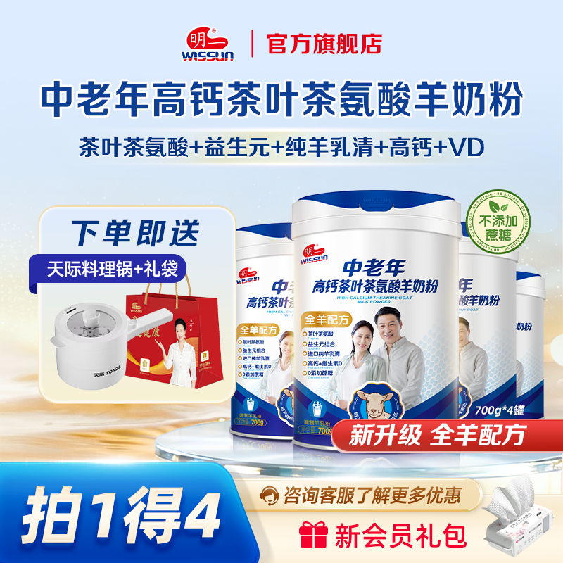 -> 明一中老年高钙高铁羊奶粉700g*4罐不添加蔗糖送礼健康老人