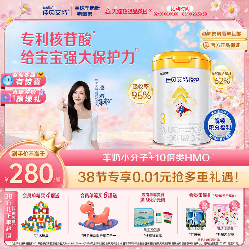 佳贝艾特羊奶粉悦护3段700g幼儿配方官方旗舰店正品