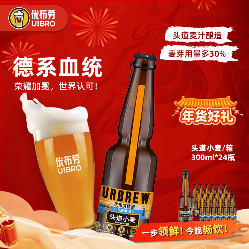 优布劳精酿啤酒头道小麦全麦芽清爽鲜啤300ml6瓶装德式小麦整箱