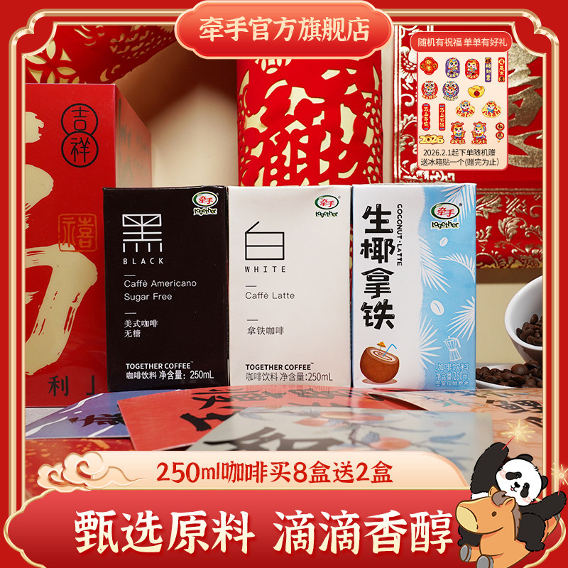 牵手咖啡黑白拿铁美式生椰拿铁即饮咖啡250mL*8盒送2盒饮料饮品