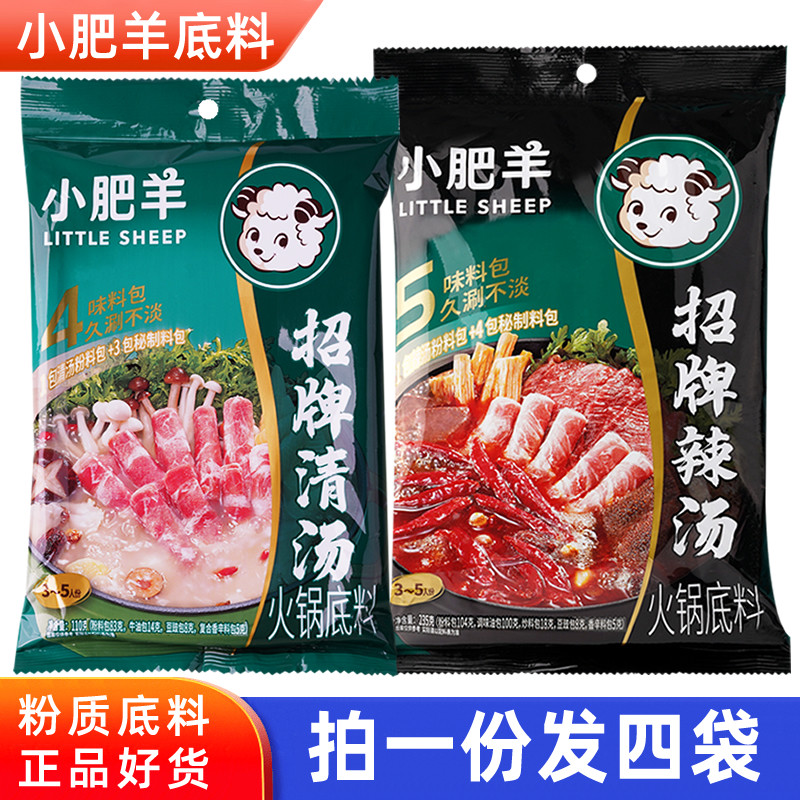 -> 发4袋 小肥羊火锅底料辣汤235g组合清汤110g分包式粉质孜然火锅料