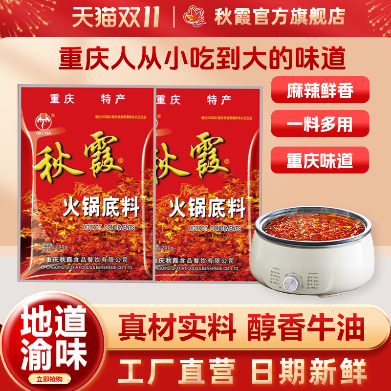 重庆秋霞火锅底料牛油200g串串香冒菜麻辣烫水煮肉片料四川成都