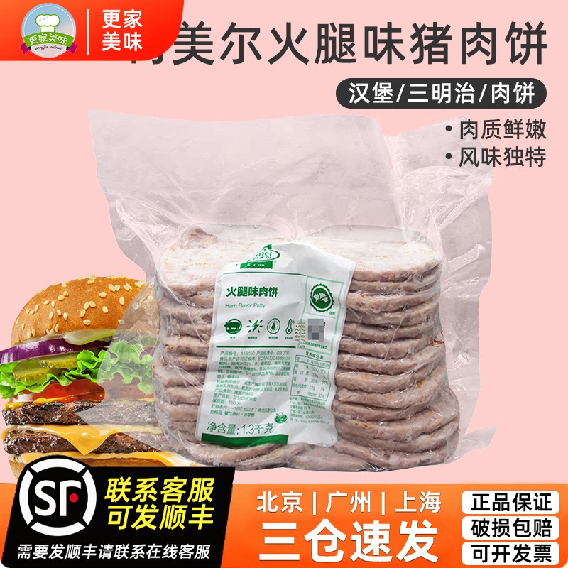 -> 荷美尔火腿味猪肉饼1.3kg约26片早餐面包三明治汉堡肉饼餐饮专用