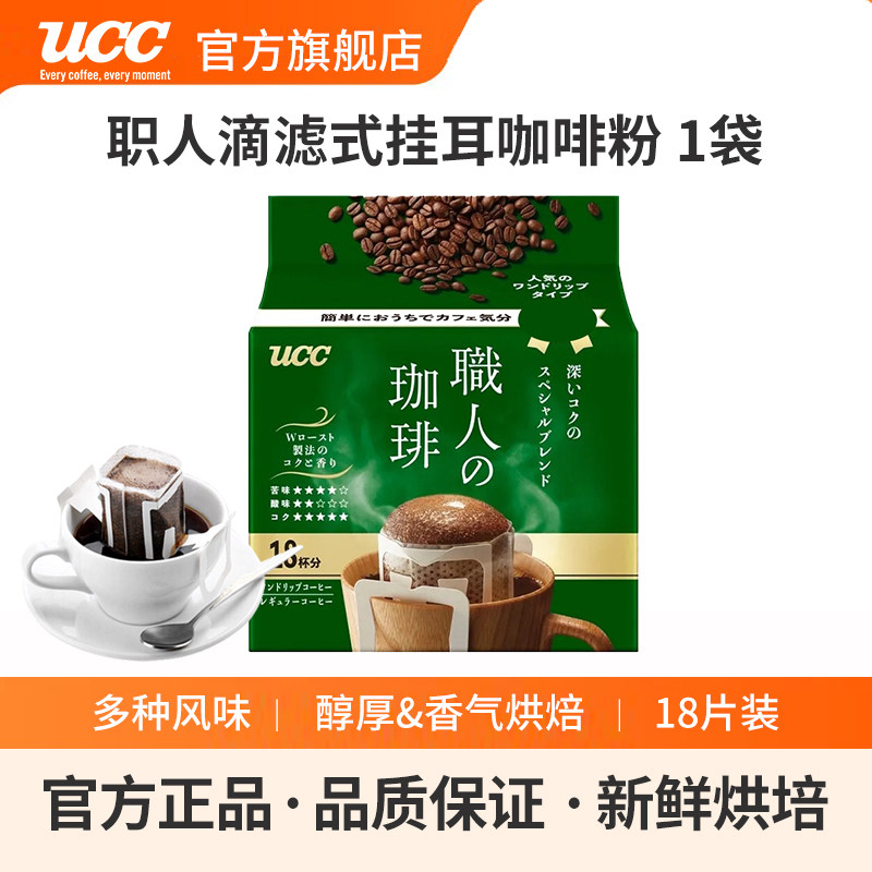 -> UCC悠诗诗日本进口滴滤式职人手冲式挂耳式黑咖啡粉深厚浓郁18P包