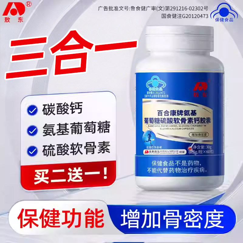 -> 敖东氨基葡萄糖硫酸软骨素钙胶囊中老年钙片增加骨密度官方旗舰店