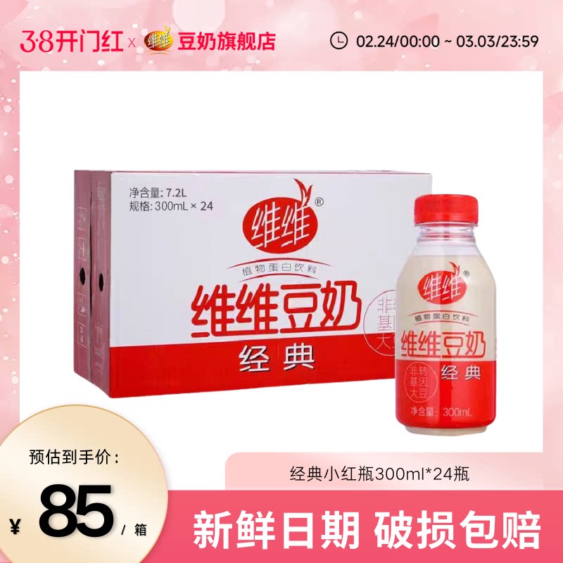 -> 维维豆奶经典植物蛋白豆奶饮料豆乳豆浆早餐15瓶整箱批发饮料小吃