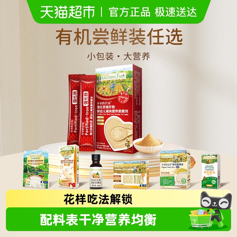 -> 爷爷的农场婴幼儿高铁辅食猪肝粉有机短面强化铁米粉核桃油尝鲜装