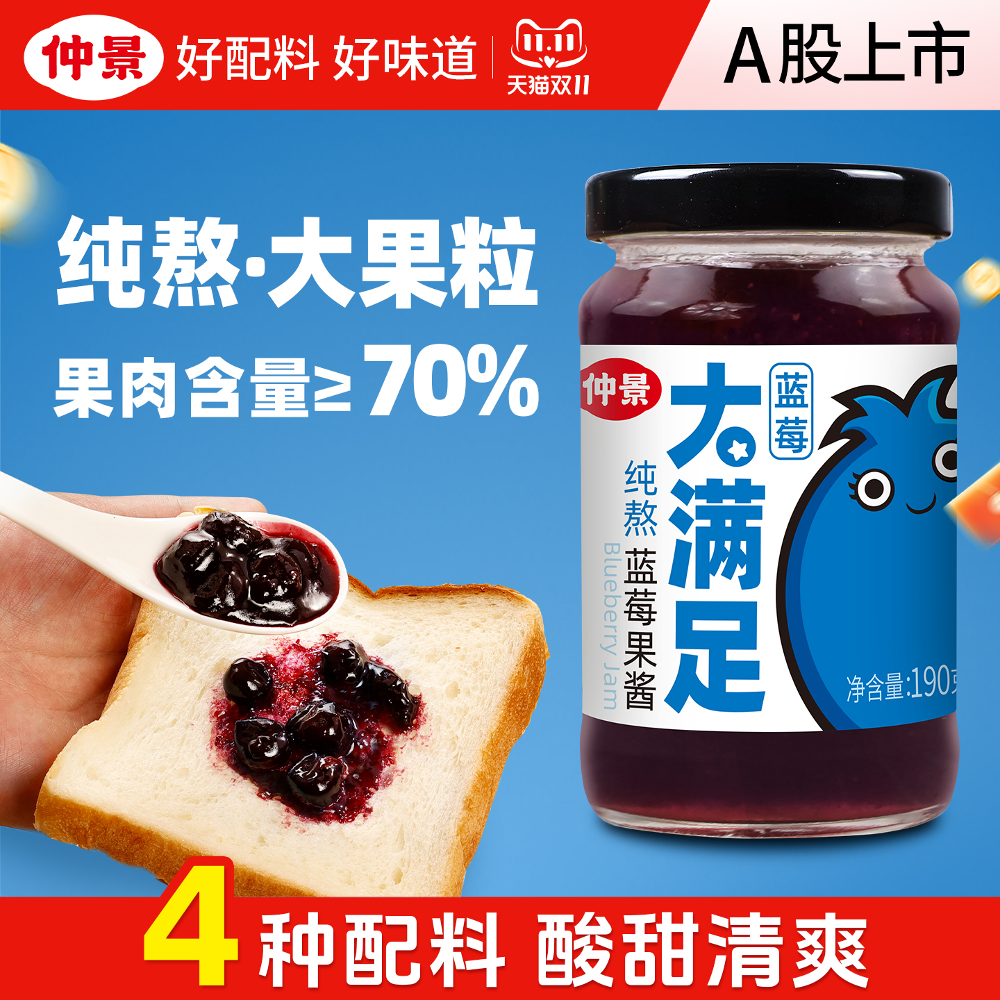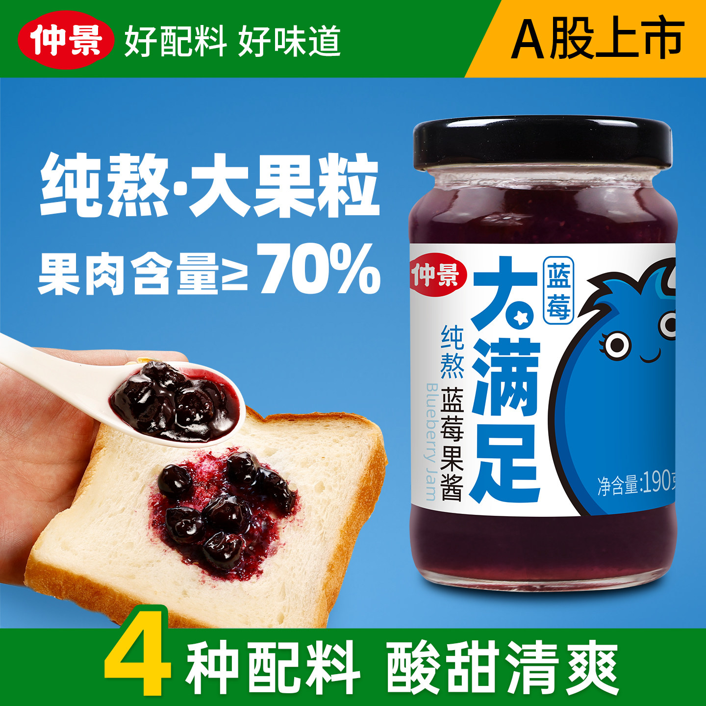 -> 仲景纯熬蓝莓果酱0添加果胶大果粒儿童早餐轻食面包吐司烘焙酱料