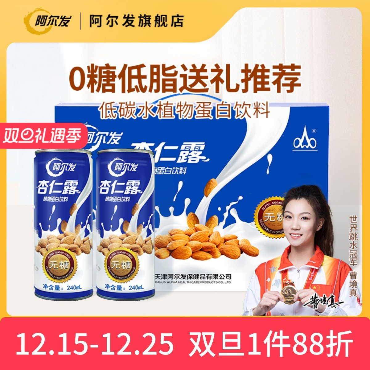 阿尔发无糖杏仁露植物蛋白饮料罐装整箱糖尿人礼盒装箱装节日送礼