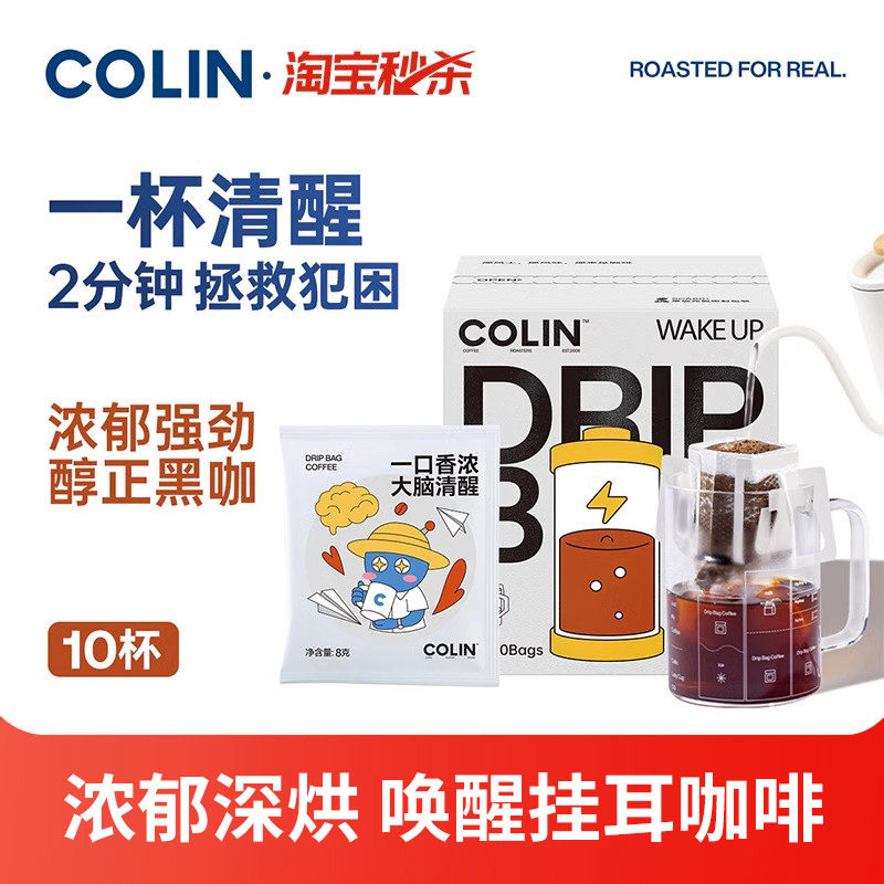 -> 柯林丨一杯清醒/唤醒随行挂耳咖啡现磨手冲黑咖啡粉挂耳包8g*10袋