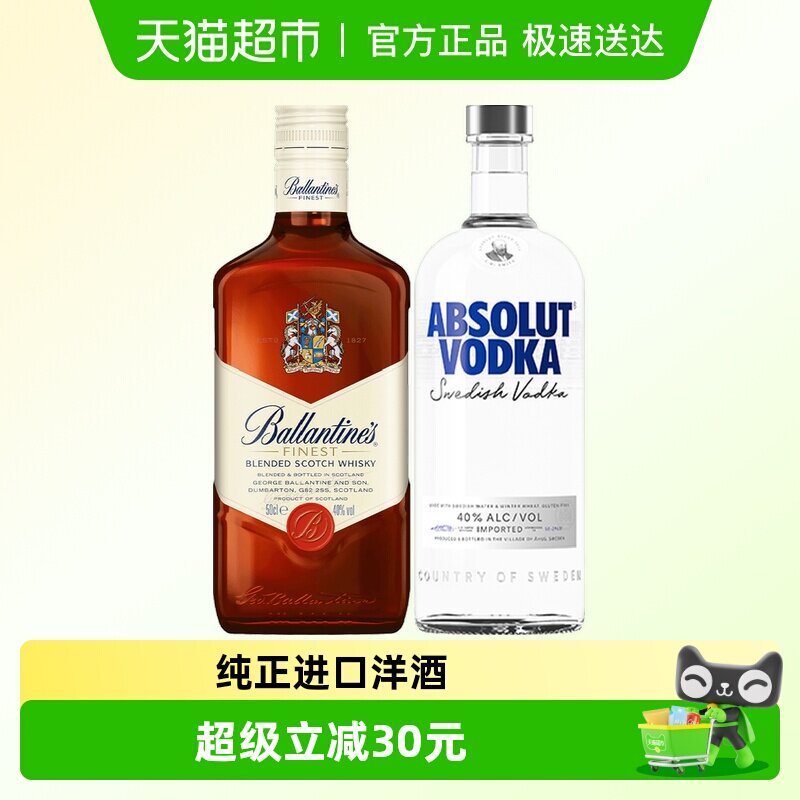 【进口】Absolut/伏特加+百龄坛特醇威士忌500ml×2洋酒特调