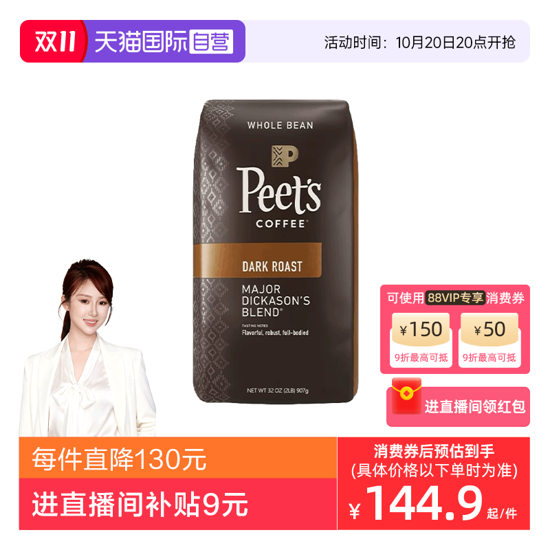 -> 【自营】Peet's皮爷原装进口深烘咖啡豆907g 迪克森少校阿拉比卡