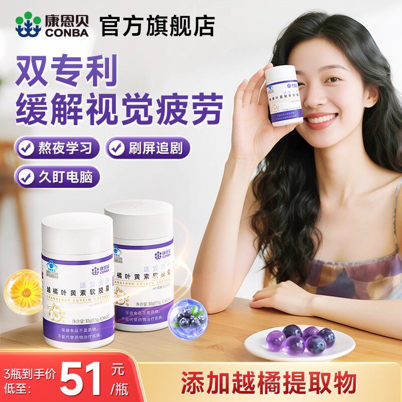 康恩贝叶黄素越橘软胶囊中老年成人爱护眼睛非软糖正品官方旗舰店