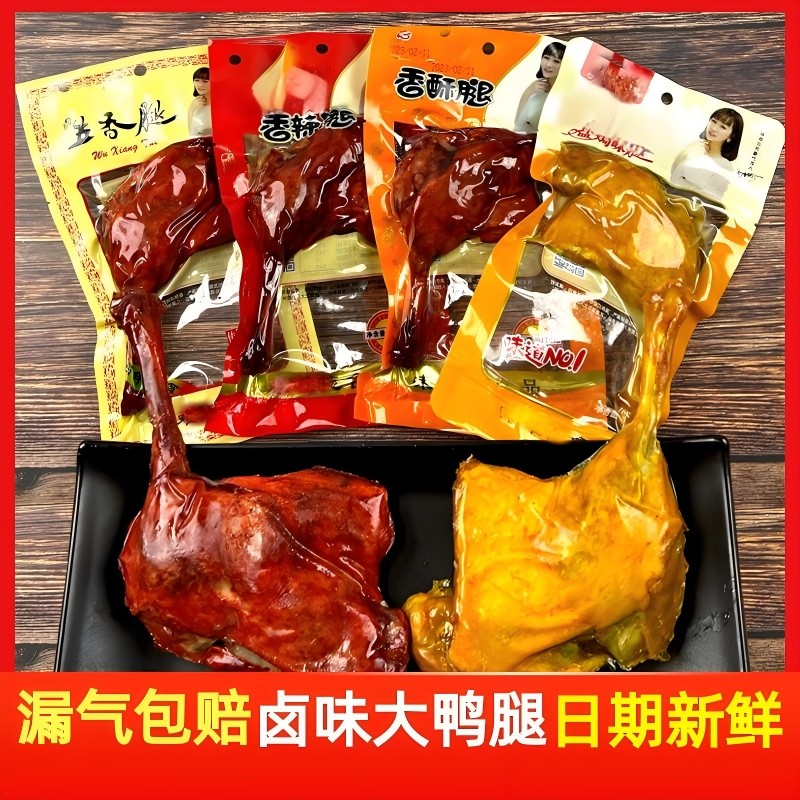 -> 鸭腿开袋即食盐焗卤味熟食大鸭腿零食小吃真空麻辣香辣辣味五香