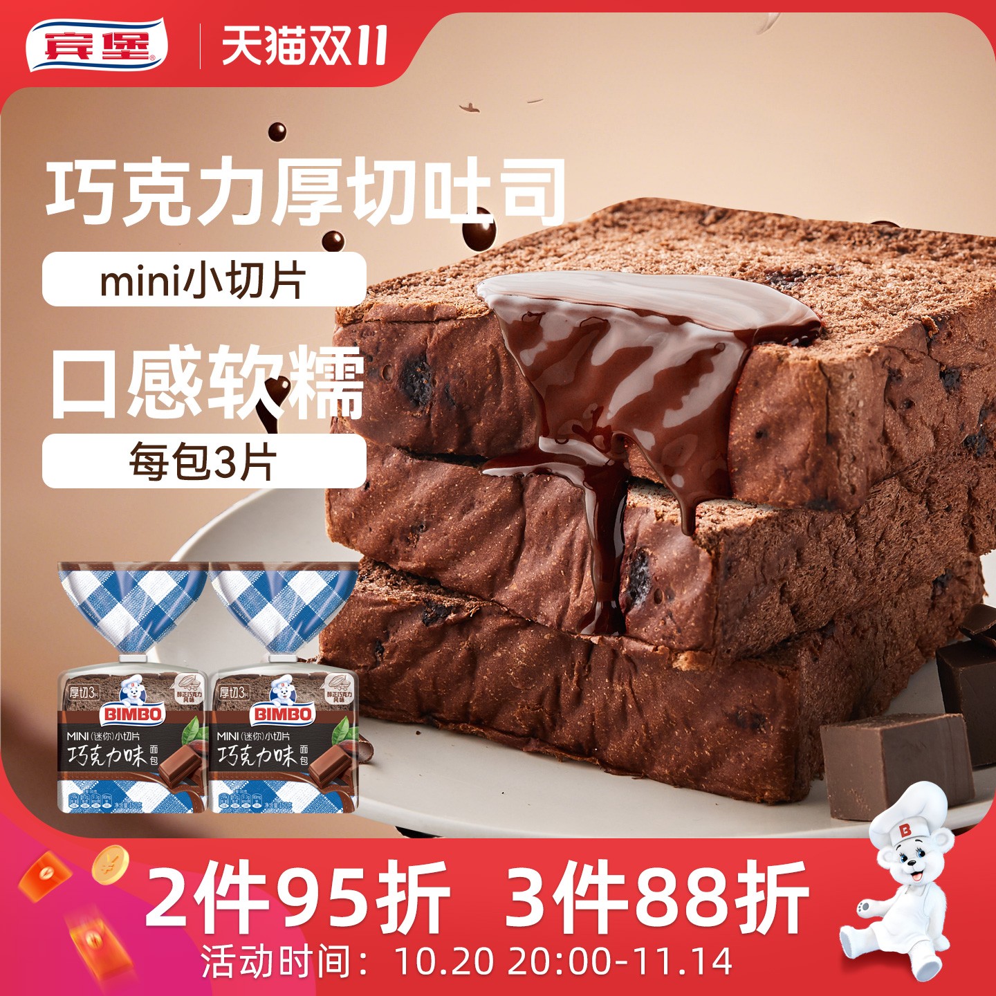 -> 宾堡巧克力味厚切吐司面包迷你切片学生早餐代餐营养休闲小零食品