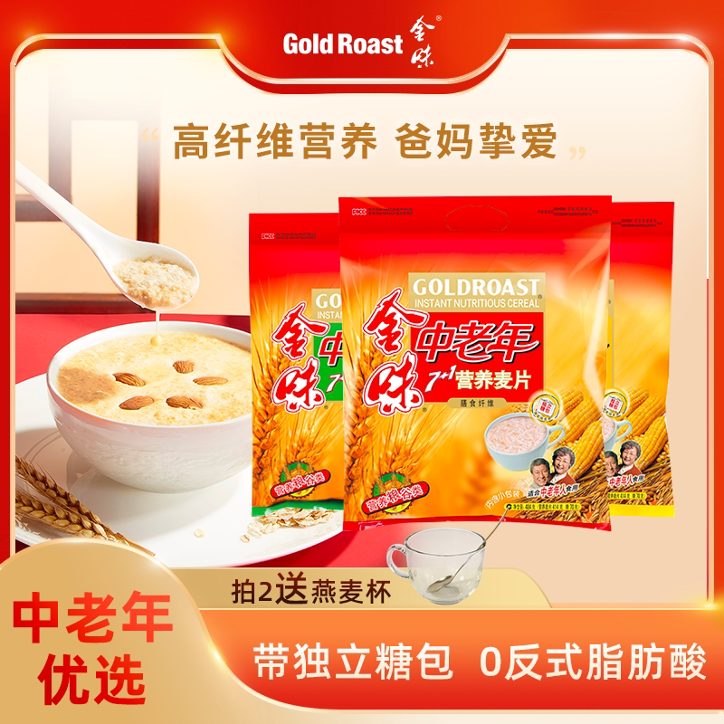 送老人】金味中老年7+1麦片速溶即食免煮冲饮营养早餐燕麦片484g