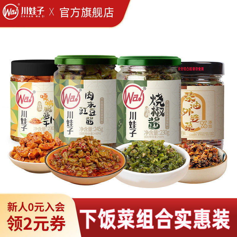 -> 川娃子下饭菜组合烧椒酱萝卜干榨菜外婆菜肉末豇豆酱拌饭拌面酱