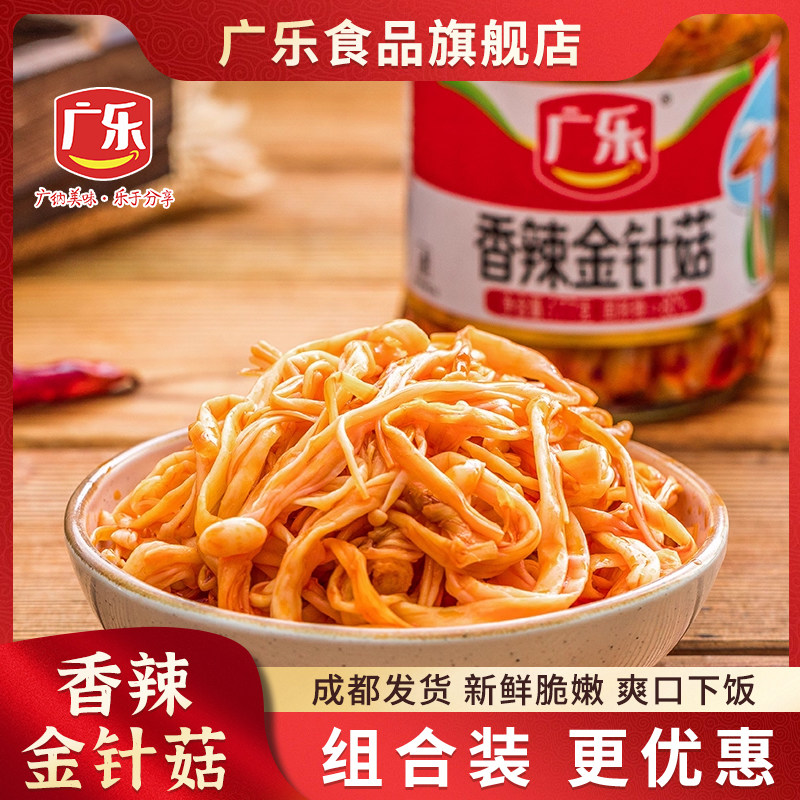 -> 广乐香辣金针菇下饭菜177g*4瓶小零食麻辣开味菜早餐红油咸菜即食