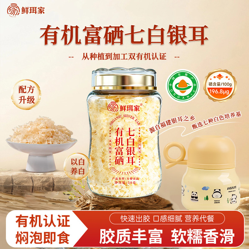 鲜珥家有机富硒七白银耳干货免洗银耳羹即食冲泡古田银耳焖烧杯