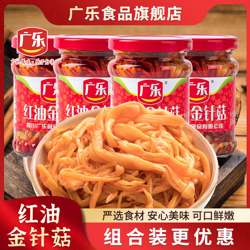-> 广乐红油金针菇下饭菜167g*6瓶开味香辣榨菜早餐咸菜即食四川特产