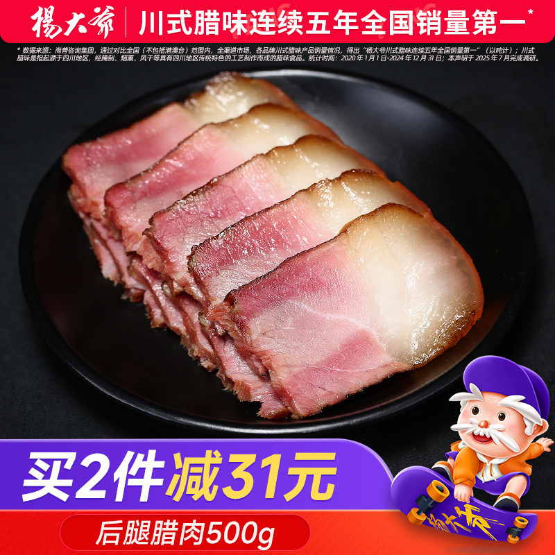 -> 杨大爷腊肉500g后腿肉四川特产柴火腊肉农家自制烟熏腊味咸肉