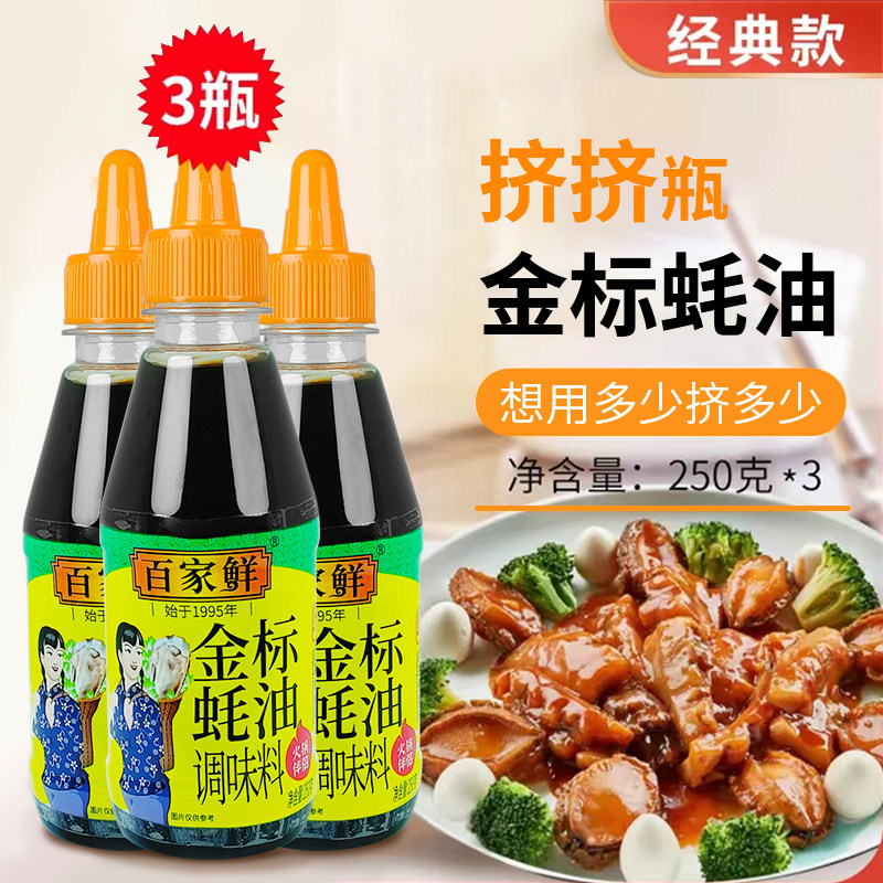 -> 百家鲜金标蚝油挤挤瓶250g*3鲜味耗油调味品酱料炒菜小瓶装挤压