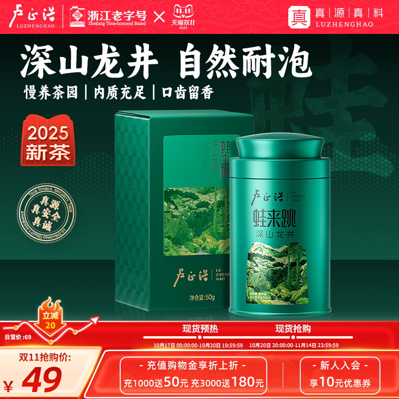 -> 2025新茶上市卢正浩绿茶龙井茶叶雨前正宗绿茶自己喝龙井罐装50g