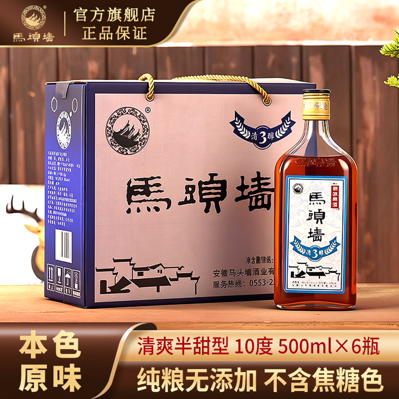 马头墙黄酒6年2瓶体验装无焦糖色无添加清爽半干型可泡阿胶做药引