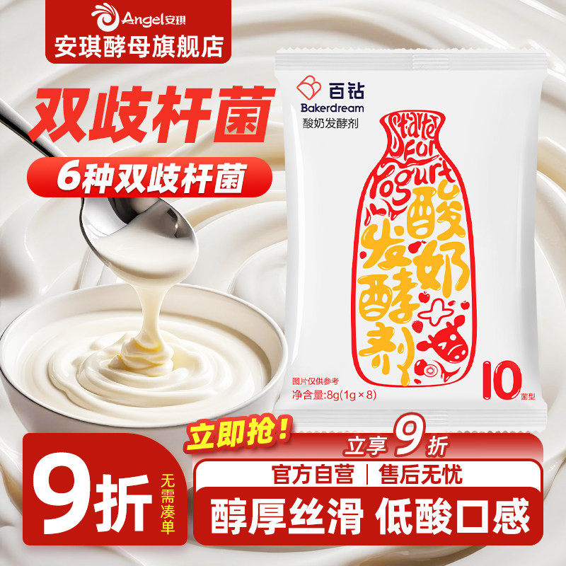 -> 安琪百钻酸奶发酵菌10菌型双歧杆菌益生菌粉家用乳酸菌种发酵剂8g