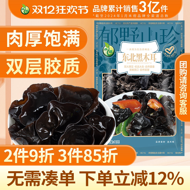 -> 禾煜东北黑木耳干货80g无根肉厚木耳碗耳秋木耳火锅食材
