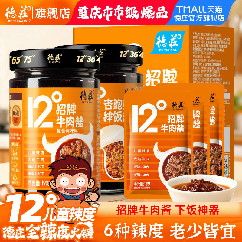 -> 德庄招牌牛肉酱下饭菜拌饭拌面辣椒酱学生12度儿童微辣官方旗舰店